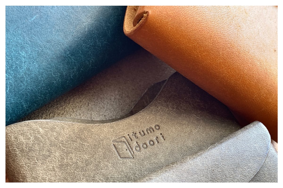 他にはない色味が目を引く、イタリアのプエブロレザーを使用しました。あえて付けられている細かい傷にも見える毛羽立ち。それによりざらっとした質感でさわり心地がくせになります。